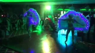 Neon light dancers may perform as a single artist or in group routines. Wen they perform it's usually set to at beat or rhythm but can also be performed in silence. The lights can be programmed to change colors and patterns in time with the beat or the movements of the performers.